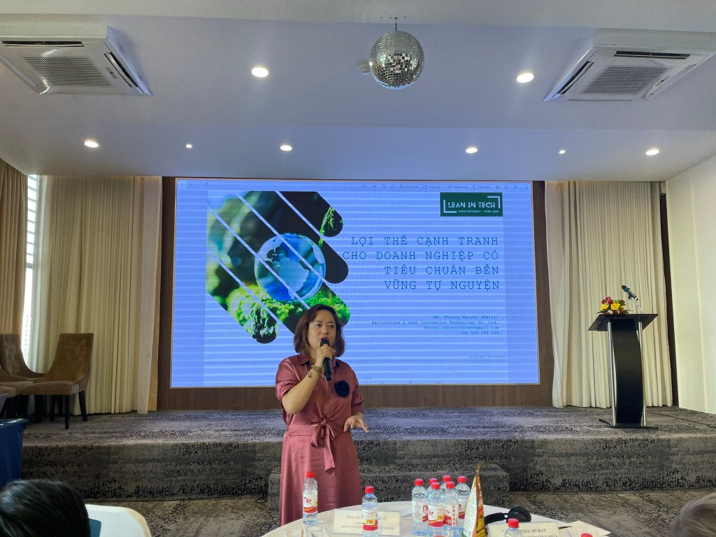 Ms. Phuong Nguyen, Director of InnoTechLean, contributed invaluable perspectives on sustainability standards and their role in enhancing the competitiveness of Vietnamese businesses in the international arena. Her discourse, titled “Exploring advantages for enterprises who have Voluntary Sustainable Standards” elucidated the opportunities inherent in adhering to such standards, thereby enabling businesses to maintain their competitive edge amidst the complexities of international integration.